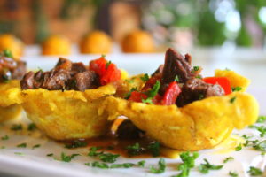canasticas de platano rellenas de churrasco